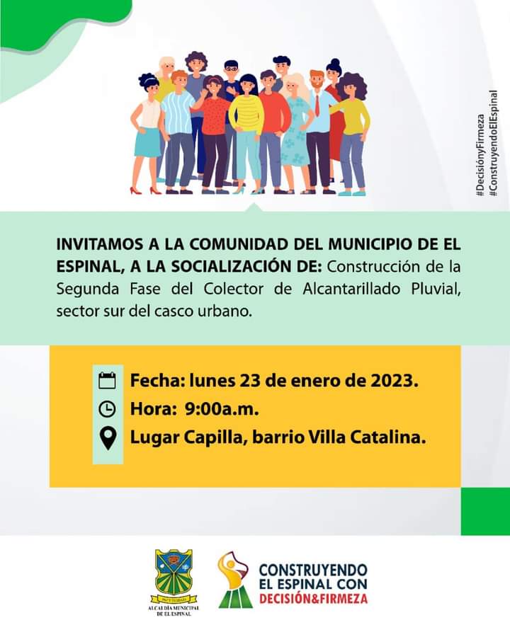 Se invita a la comunidad del municipio de El Espinal, a la socialización de la construcción de la Segunda Fase del Colector de Alcantarillado Pluvial, sector sur del casco urbano. 📣