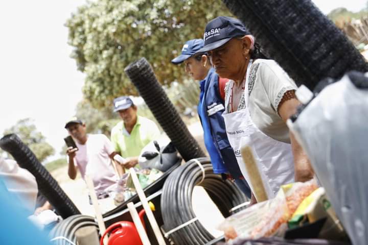 Elementos entregados: Semillas, tanques de agua, mangera, pulverizador, regadera, herramientas agricultura, polisombra, malla de encerramiento.