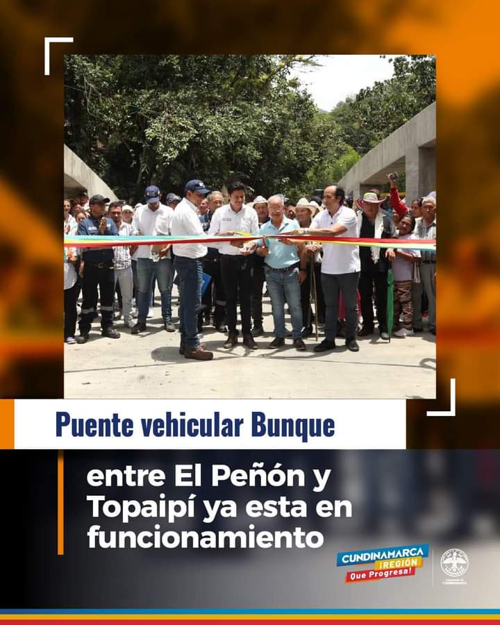 #BuenaNota✅| Ya pusimos al servicio de los topaipicenses y peñoneros el nuevo puente vehicular, en la vereda Bunque, que permite el tránsito entre Topaipí y El Peñón en beneficio de la comunidad de ambos municipios. ¡Seguimos impulsando la #RegiónQueProgresa!