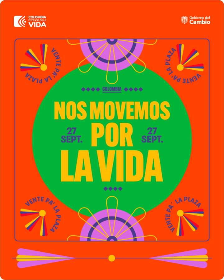 🇨🇴🕊️ Este 27 de septiembre vente pa`la plaza y súmate al movimiento cultural por la vida.