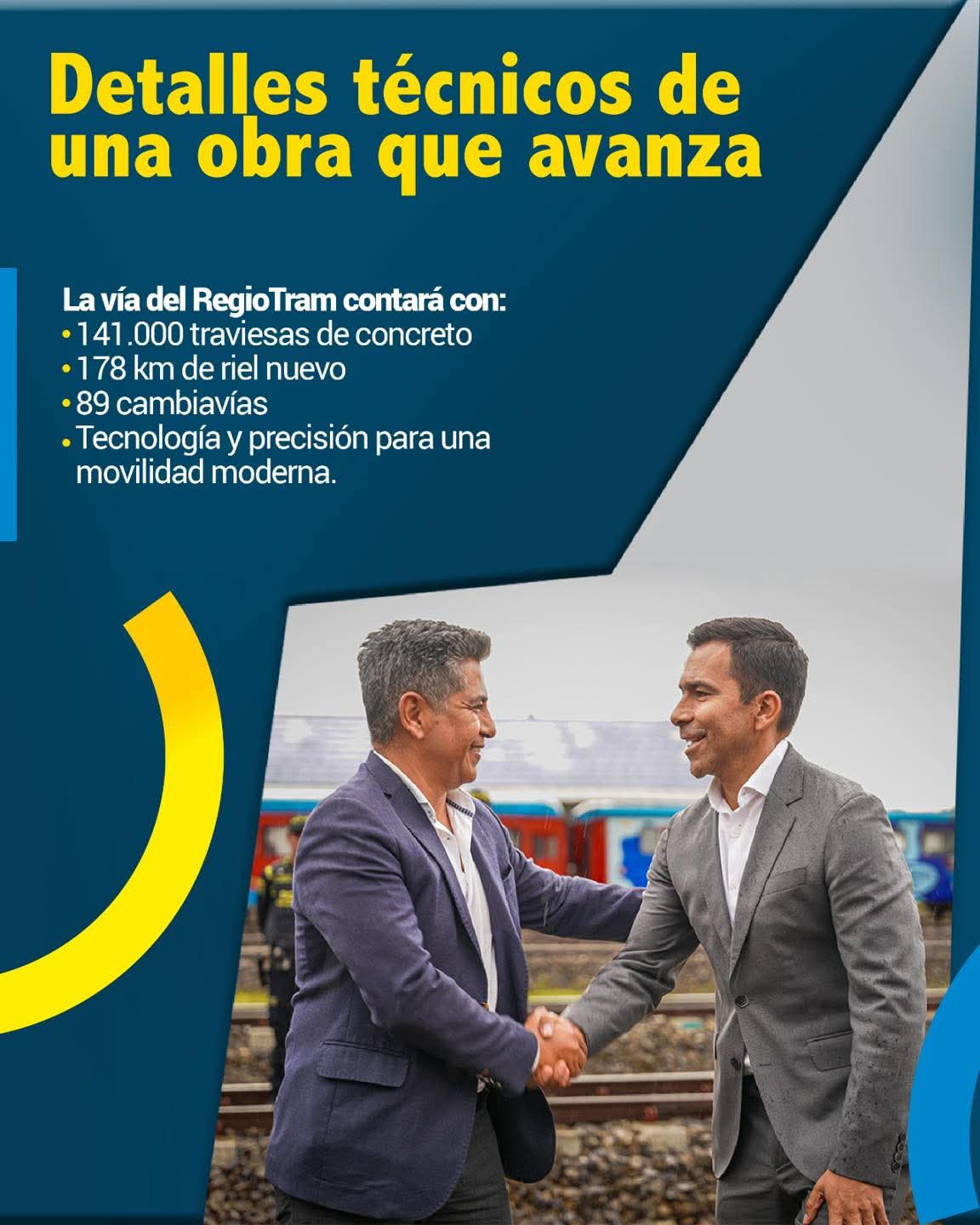 🚊El RegioTram de Occidente ya alcanza un 29% de avance en sus obras y será el primer tren de cercanías 100% eléctrico de Colombia.