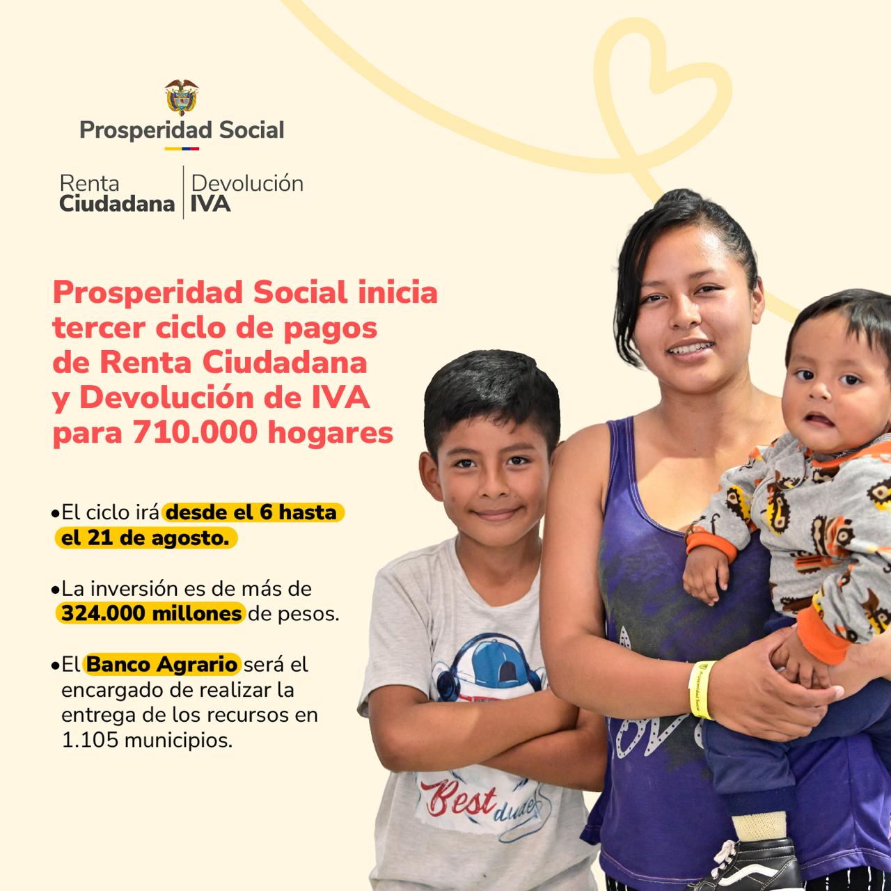 Les recordamos las fechas de pago del tercer ciclo de #RentaCiudadana y #DevoluciónIVA, que beneficiará a 710.000 hogares colombianos.