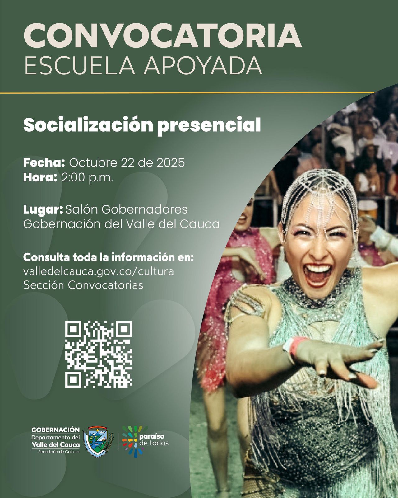 Abrimos la convocatoria ‘Escuela Apoyada’, una apuesta por mantener viva la salsa caleña en las academias del departamento. 🎶